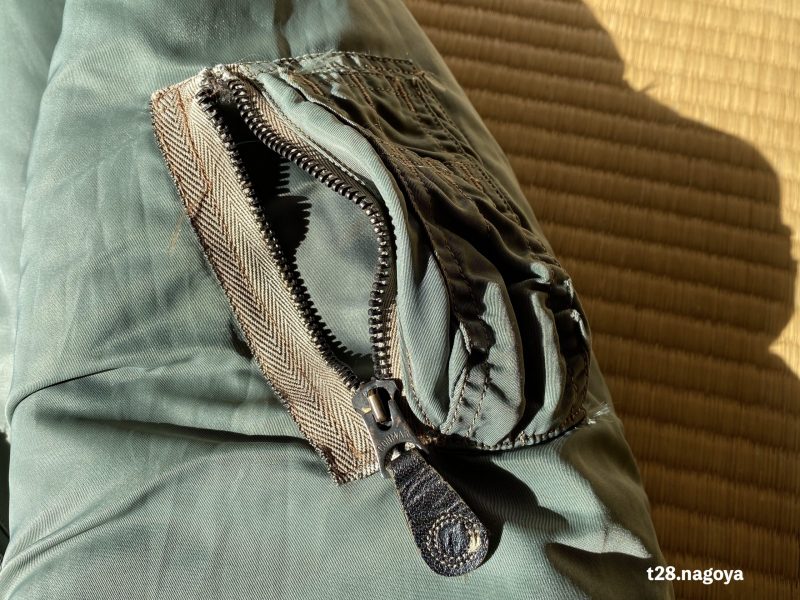 ジッパー左側内側の比翼です。この角が四角く大きい事が最高中の最高です。