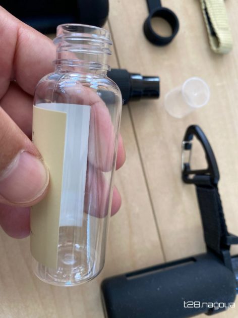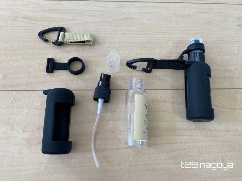 カラビナ付きスプレーボトル に消毒液を入れて、お出かけしよう!