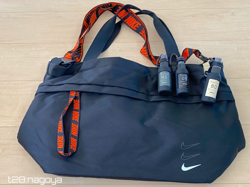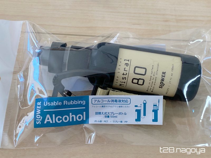 市販の消毒液はアルコール度数は40〜50%前後の為、気にせず使えます。又、カバンの紐にもぶら下げれるので、カバンの中で行方不明になる事はありません。