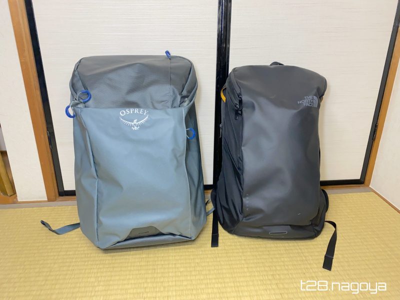 満員電車や人が多い場所では、21Lの薄くて細長い方が、扱いやすいです。